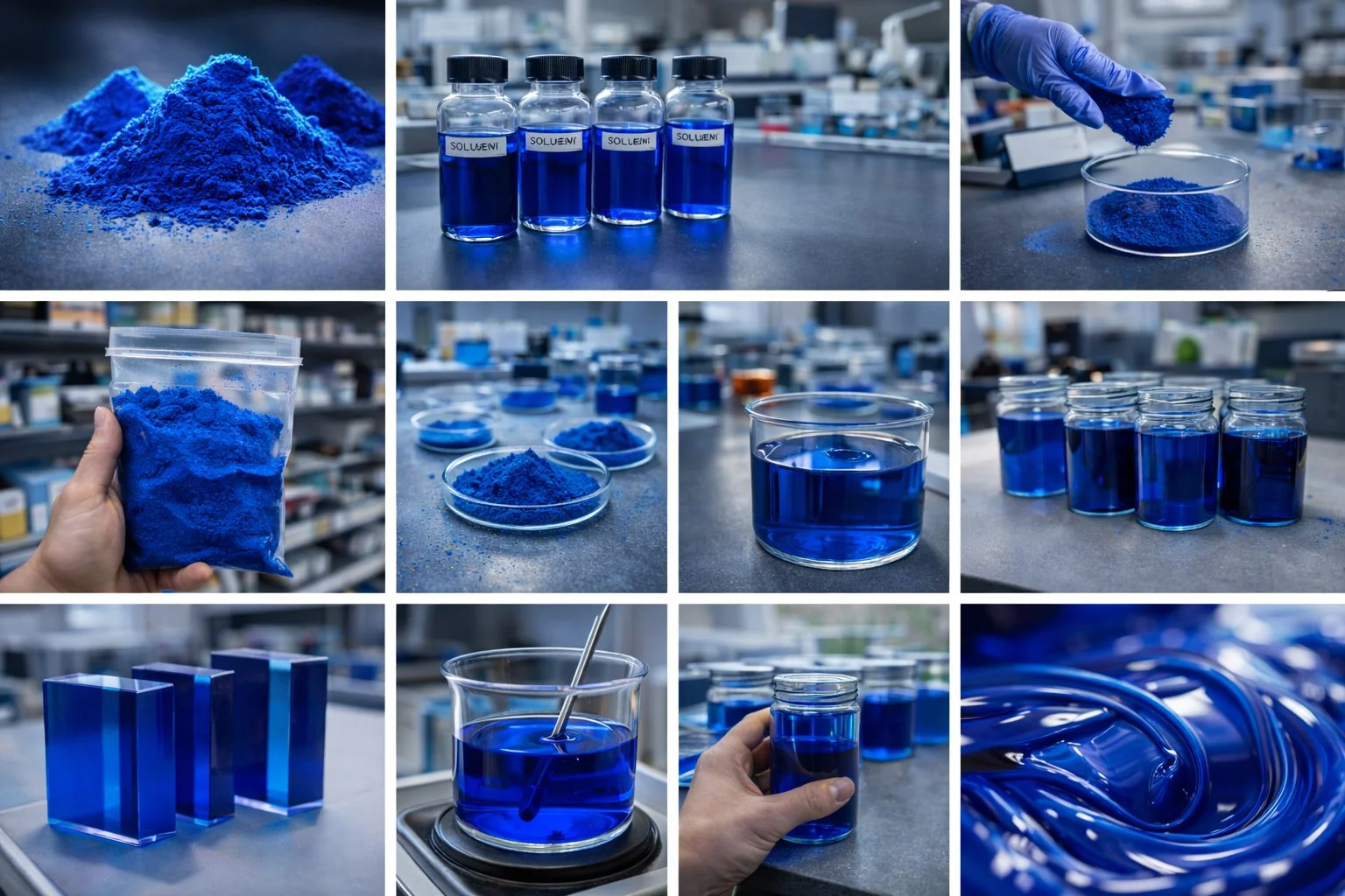 Portföyümüzde yer alan mavi ton alternatifleri arasında Solvent Blue 35, Solvent Blue 36 ve Solvent Blue 45 gibi açık ve canlı tonlar bulunurken; daha koyu ve yoğun mavi ihtiyaçları için Solvent Blue 67, Solvent Blue 70 ve Solvent Blue 78 seçenekleri öne çıkar. Yüksek performans ve teknik dayanım gerektiren uygulamalarda ise Solvent Blue 97 ve Solvent Blue 104 gibi varyasyonlar tercih edilmektedir.